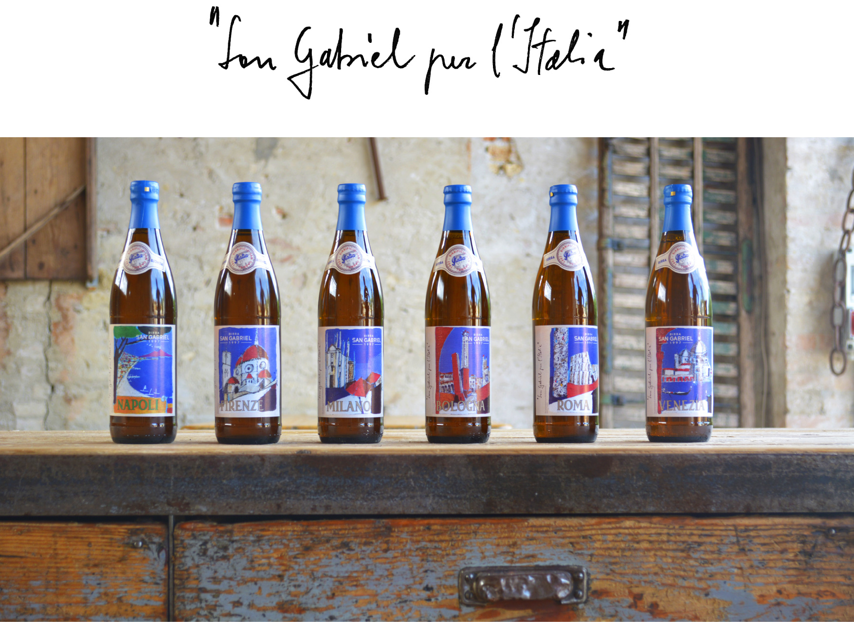 “San Gabriel per l’Italia”, è una birra Bionda leggera, che celebra lo stile del nostro Belpaese. L’etichetta è dedicata alle città d’Italia in cui l’artista Franca Faccin coniuga l’arte con il gusto italiano.